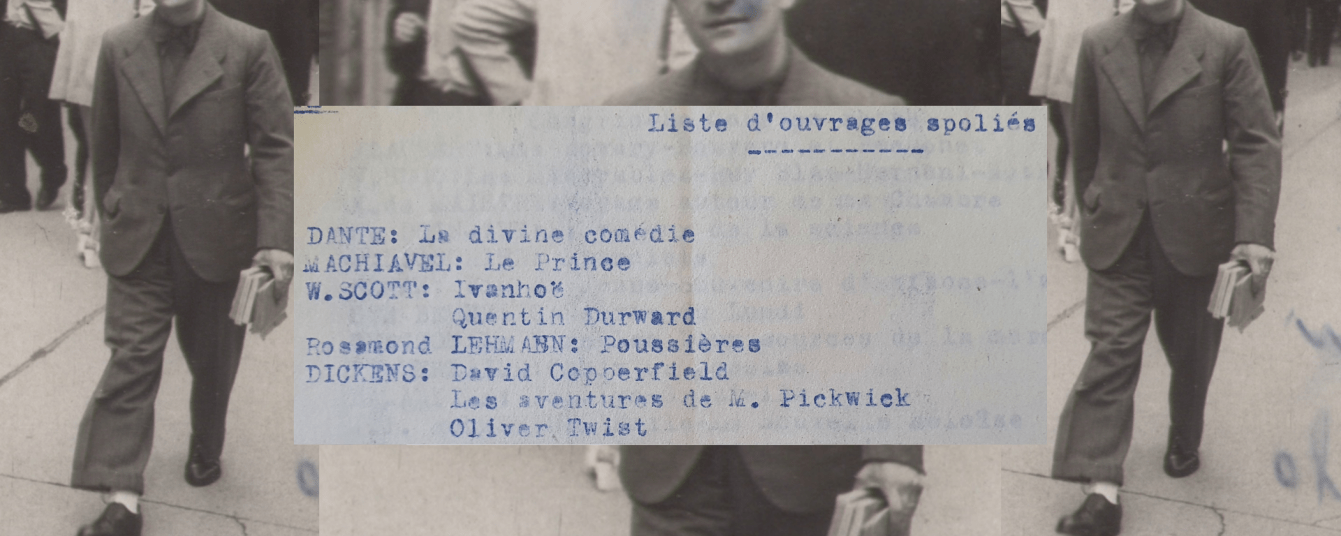 L’amour d’Isidore pour la littérature s’illustre par cette lettre tout autant que par la photo de 1942 qui illustre cet article : Isidore, livres à la main, dans une rue de Toulouse en guerre. Isidore espérait retrouver « quelques livres » de sa liste, dont il savait qu’il s’agissait « de volumes de qualité ordinaire, brochés ou même d’éditions populaires pour quelques auteurs classiques anciens ». Sur les 200 livres signalés disparus, il en a reçu une soixantaine de l’Office des biens et intérêts privés, rendus en février 1949. Le renouveau d’une collection… massive.